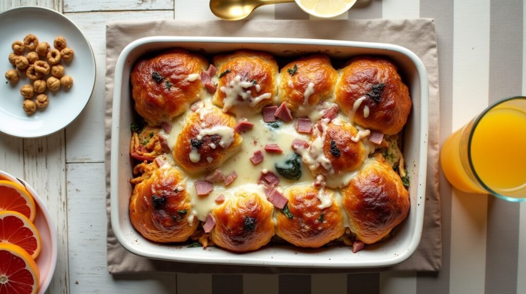 The croissants add a flaky, buttery base, while eggs provide structure, and cheese melts into gooey goodness. Toss in some veggies, sausage, or ham to take the flavors up a notch. What’s more, it’s a crowd-pleaser that will leave your family and friends asking for seconds. Perfect for busy mornings or indulgent weekends, this recipe is as simple as it is indulgent. Let’s dive into the details and create something truly special!